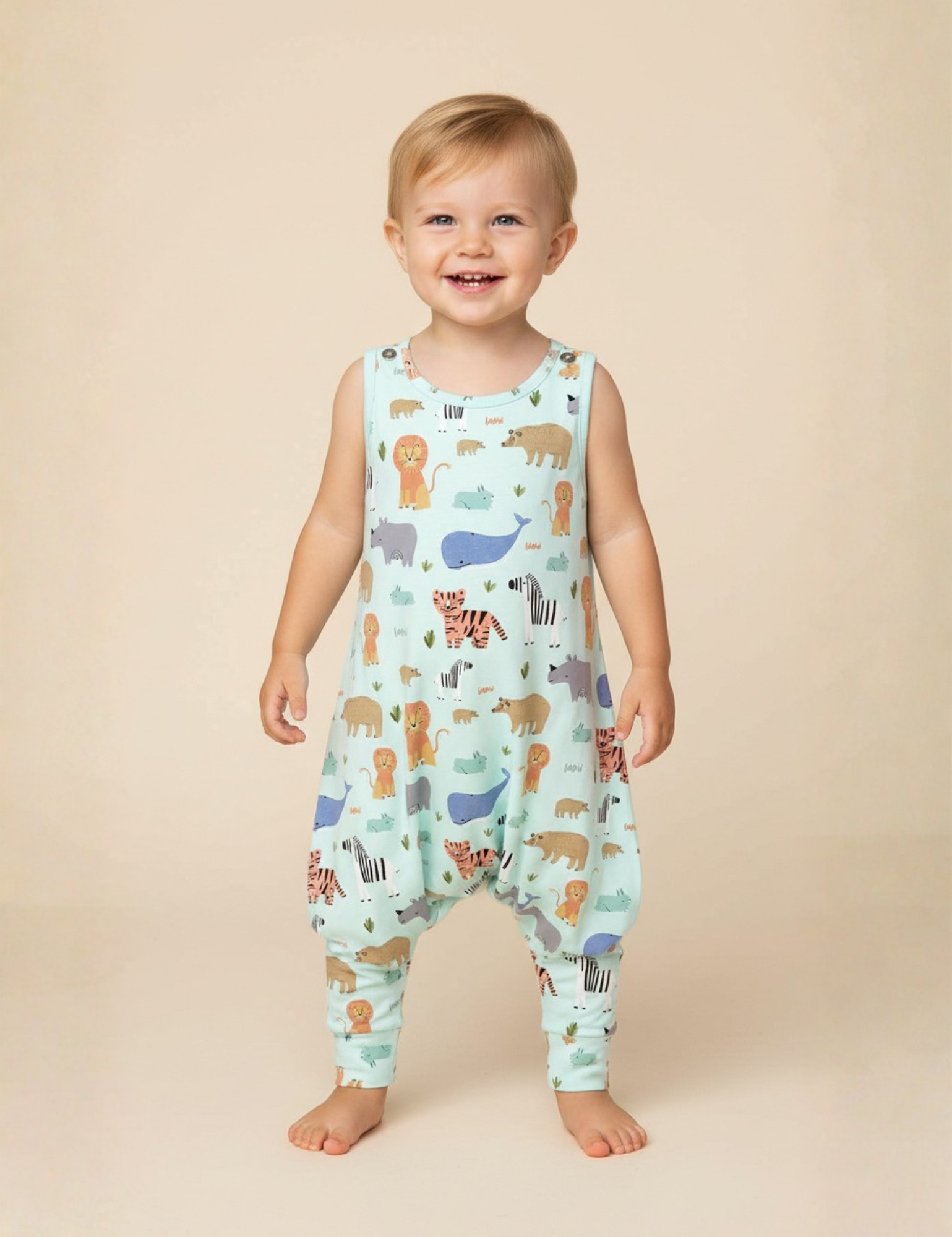 Harem Romper Mini Zoo Blue