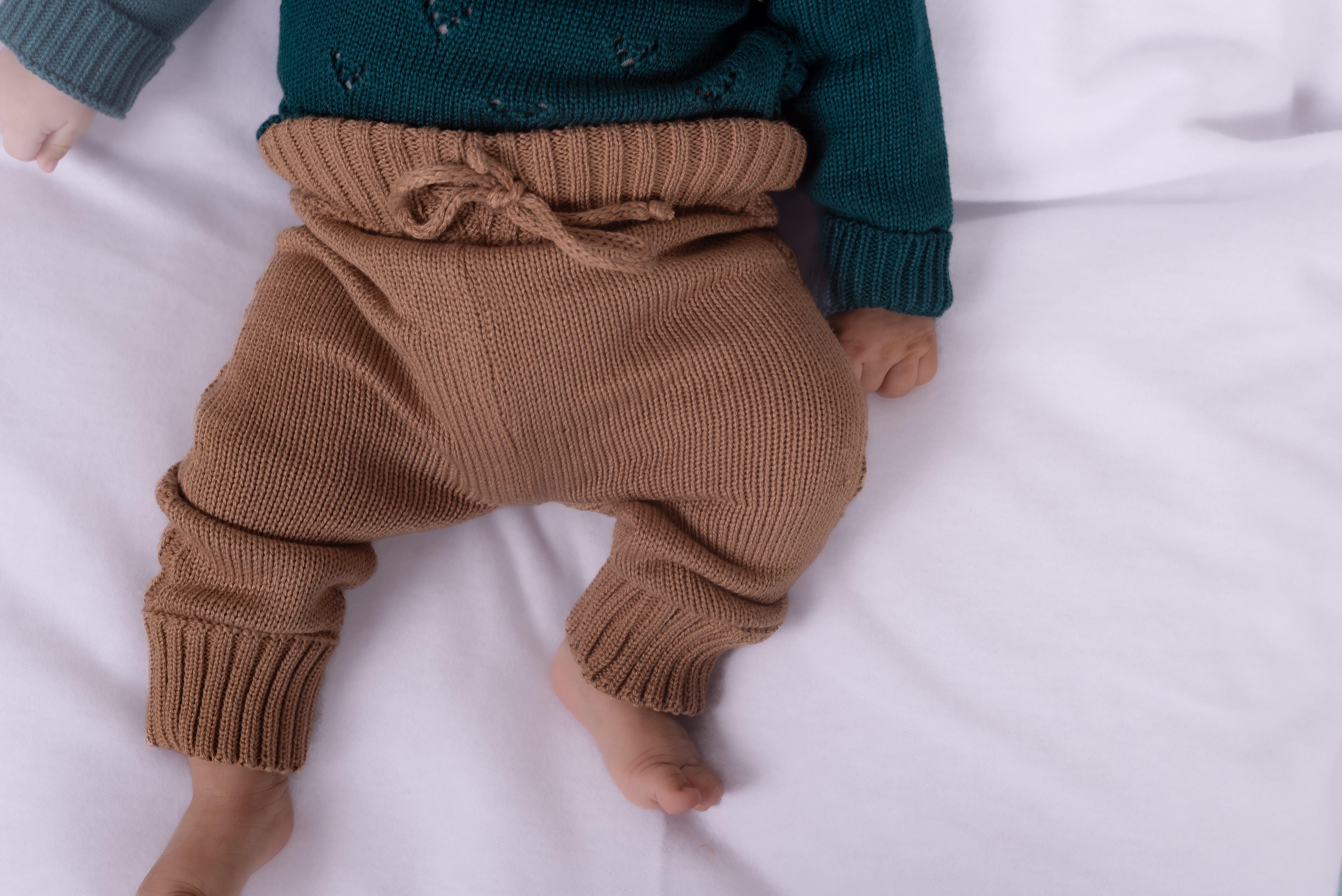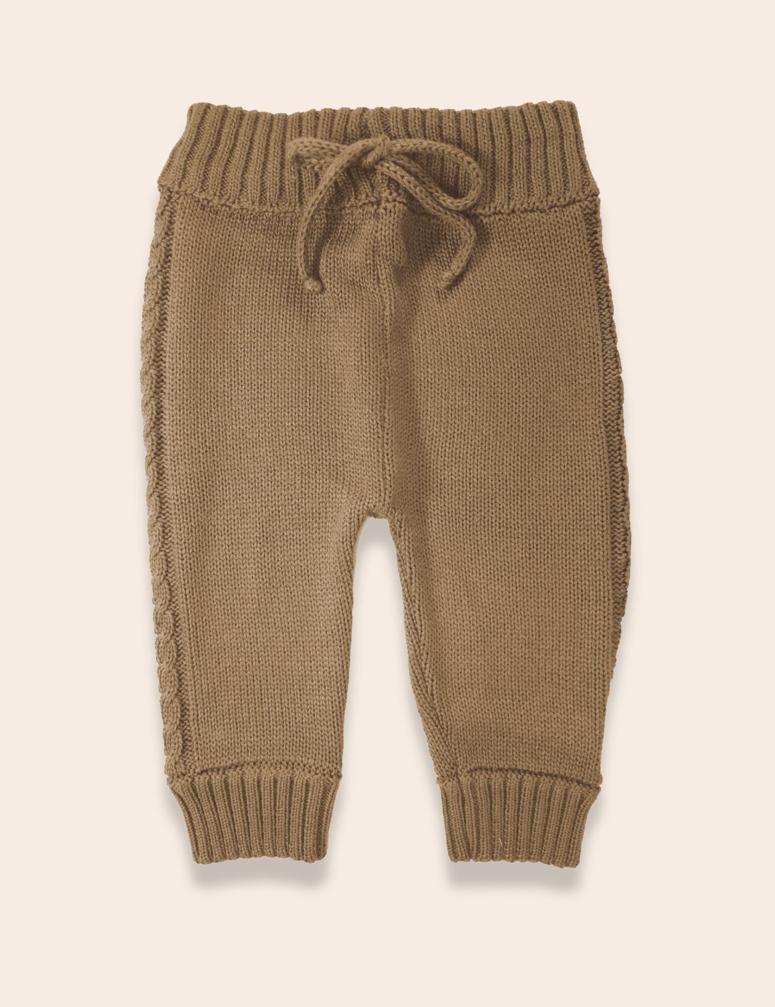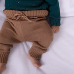 Los pantalones tejidos perfectos para mantener a tu bebé cómodo y con estilo. Estos braided pants en color camel están confeccionados en tejido suave y cálido.