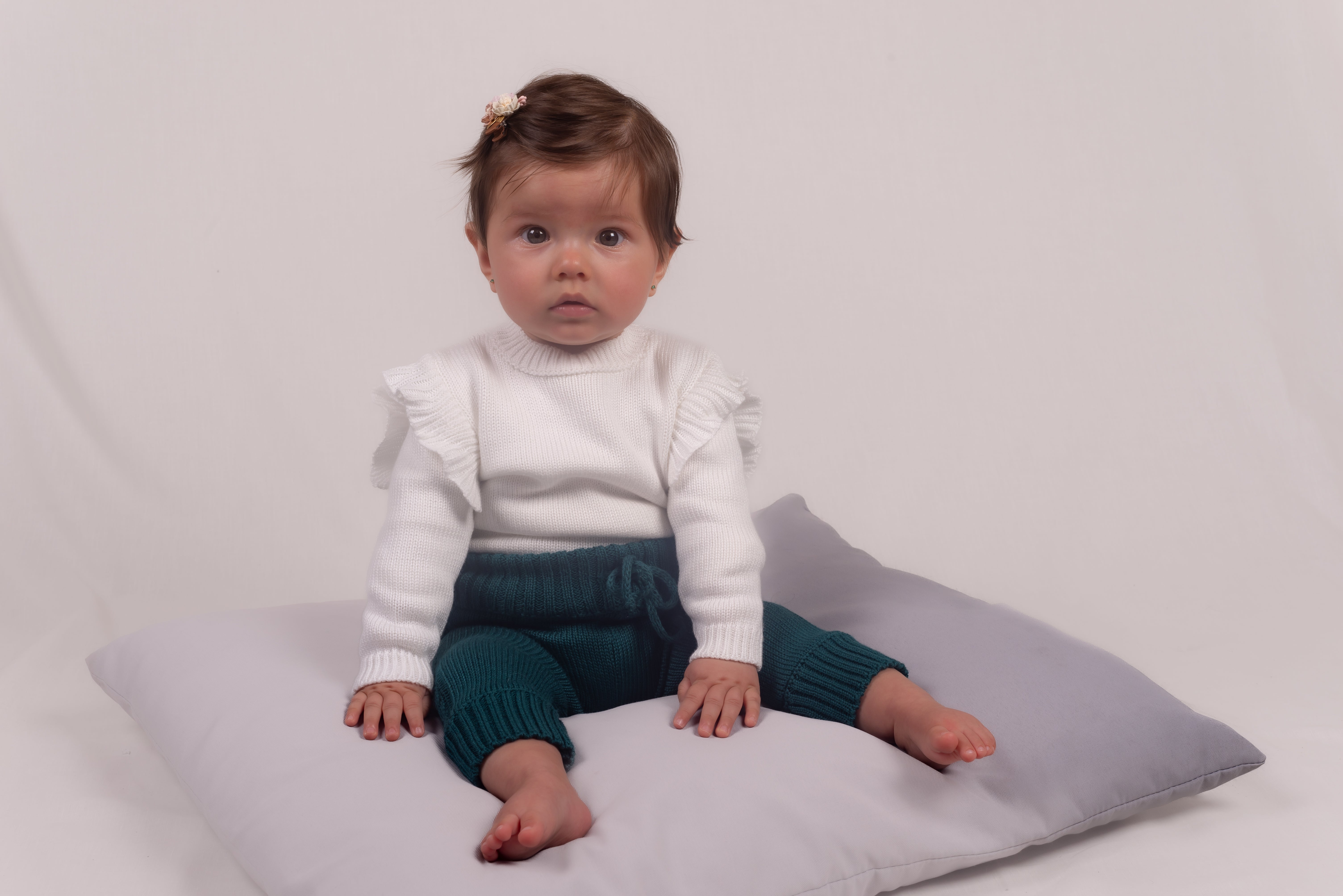 El tejido es suave y abrigado, ideal para días frescos, y los broches en la parte inferior permiten cambiar el pañal de manera rápida y práctica sin perder el estilo . El tono ivory es perfecto para ocasiones especiales, fotos familiares o para combinar con pantalones y bloomers de colores vivos .