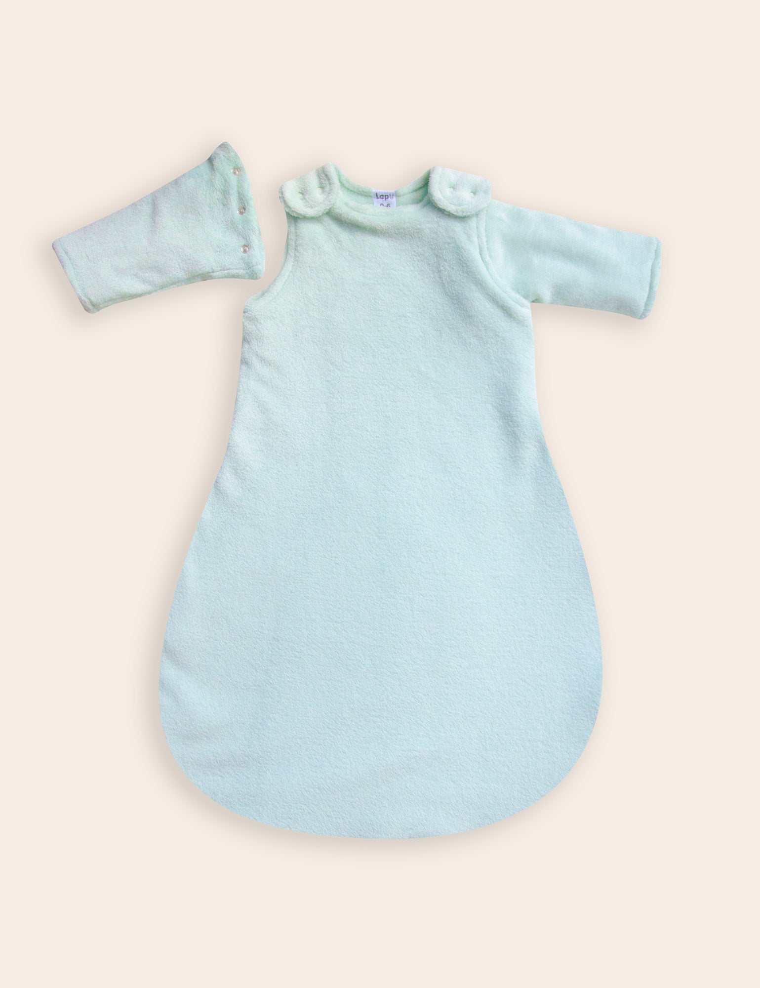 Nuestro sleeping bag TOG 2.5 térmico para bebés, confeccionado en suave piel de conejo premium de doble capa, ofrece comodidad y calidez. Con una práctica cremallera lateral para facilitar el cambio de pañal, broches en los hombros, y mangas removibles, permite que sea una prendar super versátil, adaptando las mangas según las necesidades del pequeño. ¡Perfecto para climas fríos!